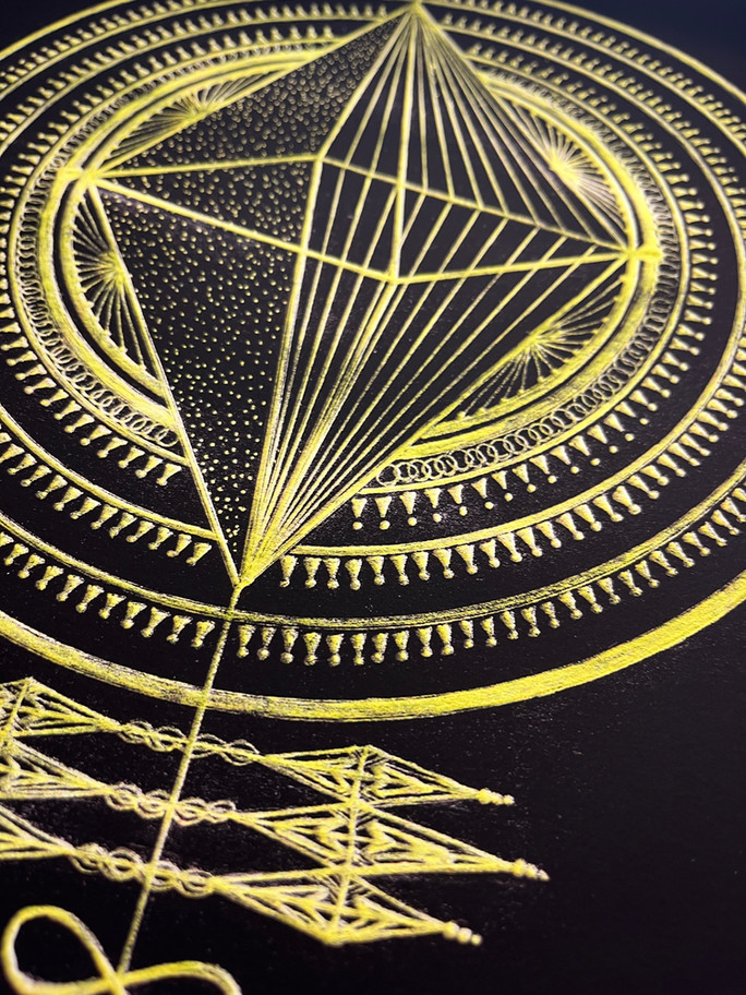 When gazing at this piece, it's not so much to be understood in your head ~ I created it to be felt in your < body >. It’s a visual construct of what it means to hold yourself through collapse, through abuse, through endings that try to take you apart.
